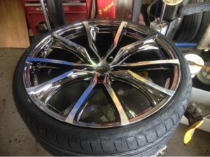 トヨタ ヴェルファイア用の22インチアルミホイールにタイヤを組み込みました。